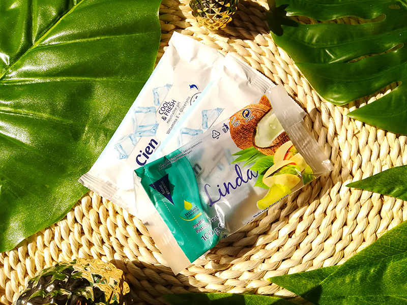 CIEN NAWILŻANE CHUSTECZKI ODŚWIEŻAJĄCE – jestem od nich uzależniona, trzymam je zawsze w toaletce i używam do zmywania produktów do makijażu z dłoni. Chusteczki są tanie, trwałe i nie zasychają w opakowaniu. POLECAM